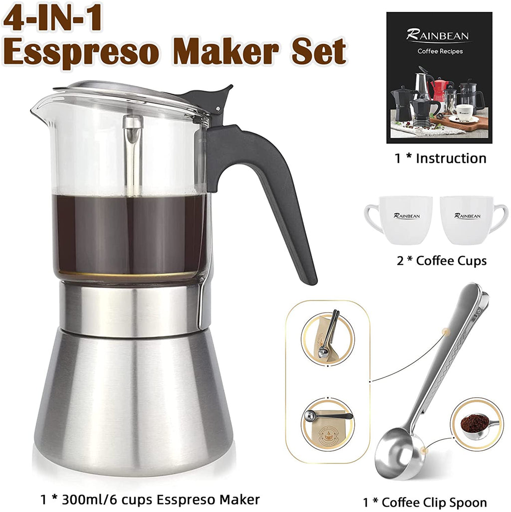 RAINBEAN Italian Expresso Maker, Moka Pot, Stovetop Coffee Makers, Stainless Steel Coffee Maker, Suitable For Induction Hob